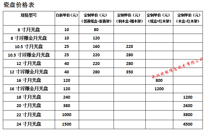 也有其他瓷质的盘,如镁质瓷、低骨瓷供大家选择: